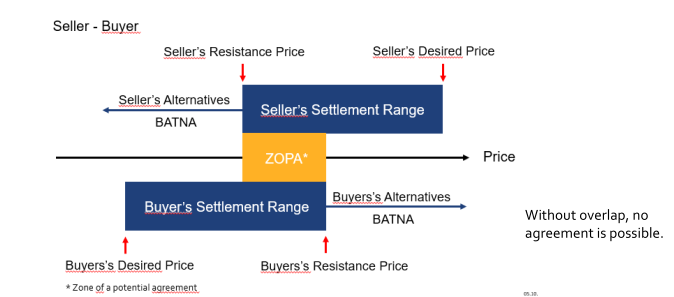 - Zone of potential agreement (ZOPA) is the bargaining range where two or more negotiating parties might find common ground. The parties must have a common image of the outcome they want to achieve and the ZOPA typically includes at least some of the ideas and interests of each party to get there.