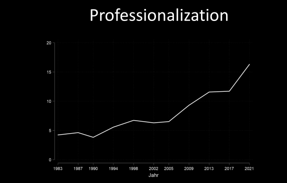 • Leadership increasingly independent, competence appeals, professionalization.