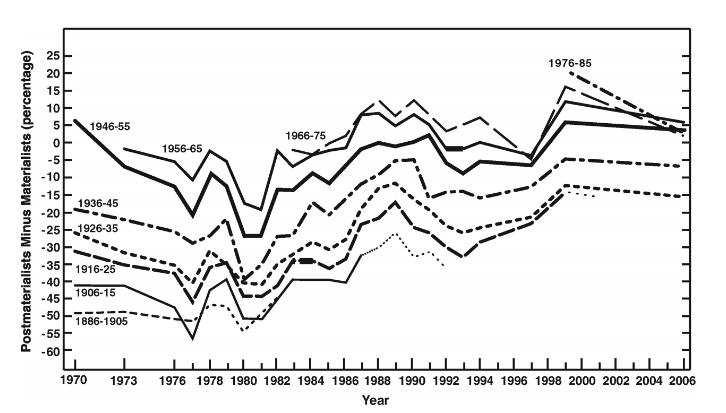 - Basic argument→The postwar generation grew up in conditions of material security. This led them to develop different values than their parents: