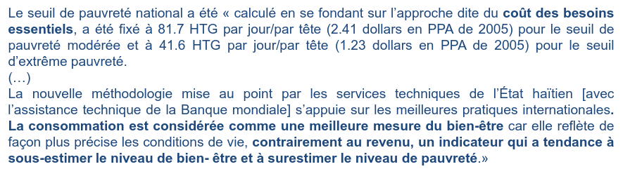 - Seuil de pauvreté entre 1.90 - 2.15 $ par jour (fixé par la BM)