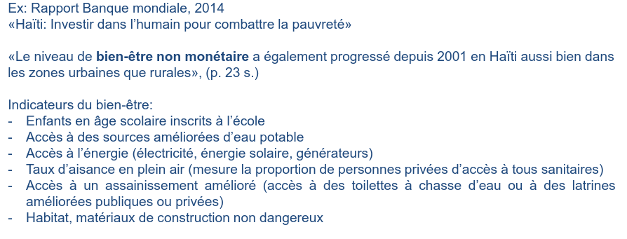 - Prise en compte du niveau de bien-être non monétaire.