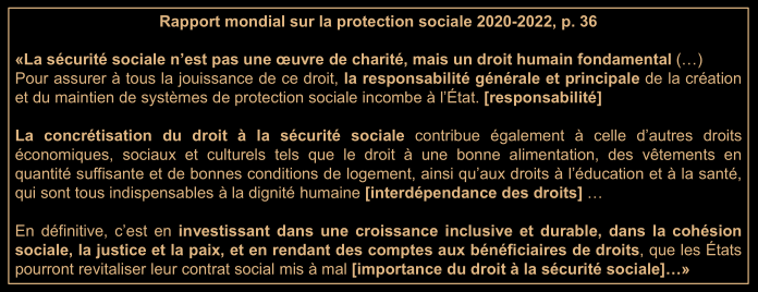 On établit le droit à la sécurité sociale et à un niveau de vie suffisant, une protection est donc nécessaire.