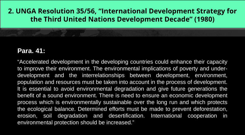 It does reference environmentally sustainable, so this concept was narratively present in 1980 but it doesn’t aim at saying sustainable development but the need to ensure an economic development process which is or should be environmentally sustainable. It doesn’t talk about sustainable development.