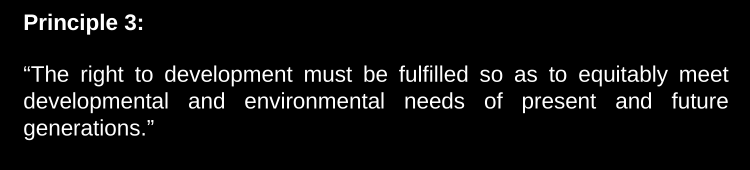 When it comes to the right to development, it has to be achieved respecting intergenerational equity. This is a definition of sustainable development. It’s also kind of what the BR did.