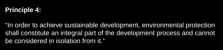 Then in P4 we see the integrative approach. Sustainable development is achieved when environmental protection is integral to developing and cannot be considered in isolation to it. This is the big contribution of Rio to sustainable development, the added value on what it is truly. It shows what the meaning should truly be.